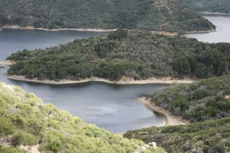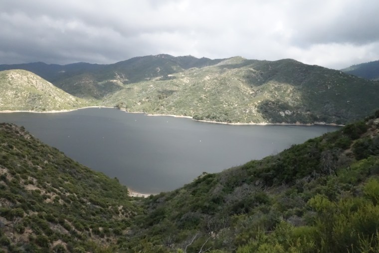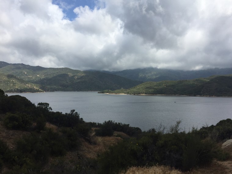 The three of us cross a traffic-y bridge then hike up some switchbacks to the top of a ridge. Silverwood Lake expands before our feet. It feels special to see so much water. Small patches of sun break through to illuminate the surface. Tiny boats zip in and out of inlets. It’s beautiful.