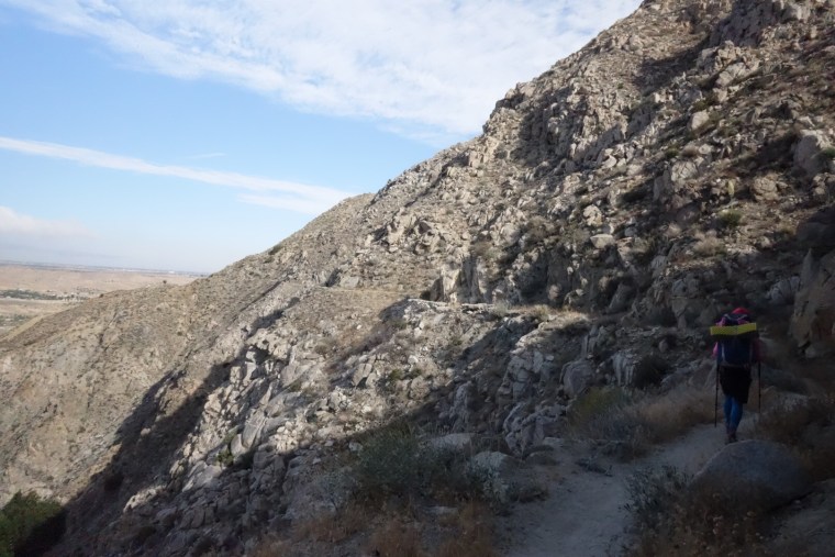 Overstock catches up to me and we hike together for a few miles. I’m impressed with how flat the trail is cut into the side of the hill.