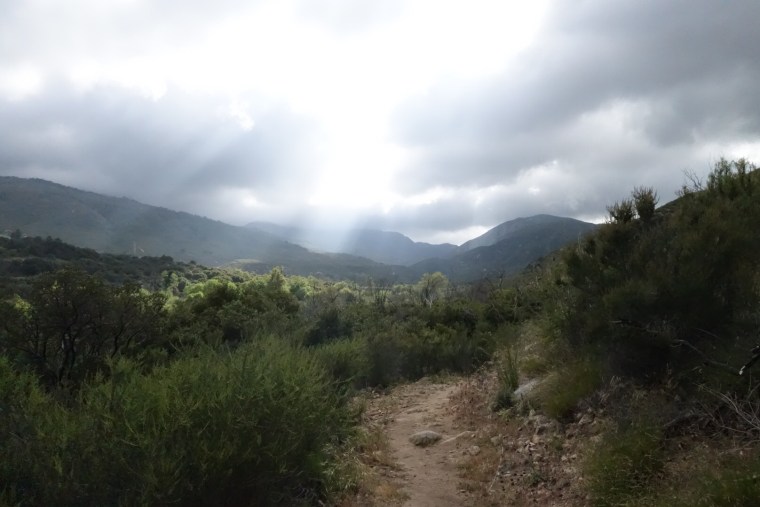 Jeff and Jonathan get ahead as I watch the clouds pass over the hills. It’s hard to look away. Giant sun beams glide over the forest and illuminate far off sandy beaches. This is so different than this morning, it almost feels like a whole new day.