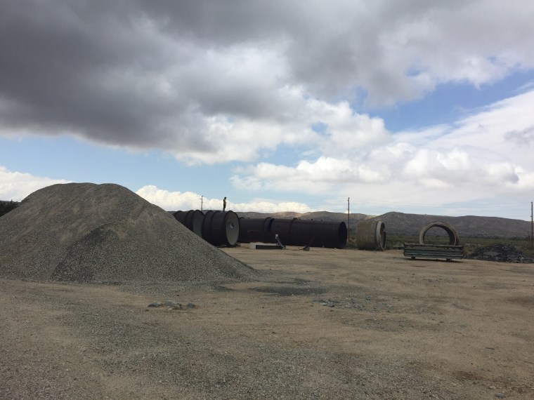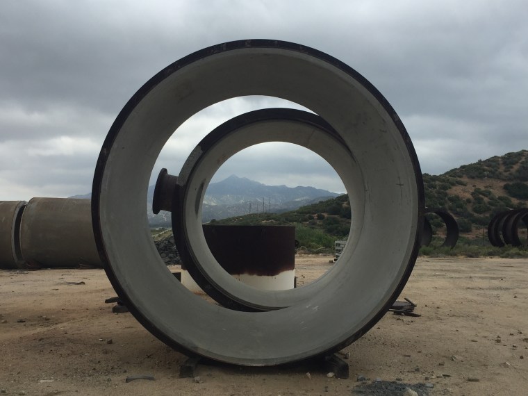 I see some very large pipes in the distance with… Surprise! It’s Jeff standing on top.