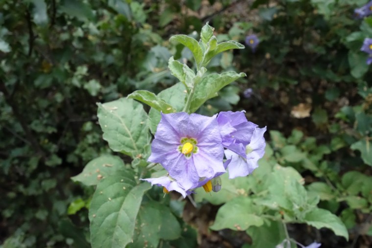 The vegetation starts to close around the trail. The air is humid. The wind dies down but the clouds persist. Is it going to rain or not? I get impatient and dig my camera back out. The flowers are beautiful through this section.