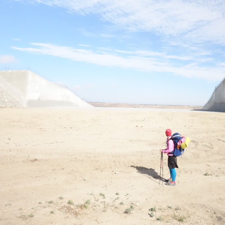 A large gust kicks it up into the air. Bleck! I wait for the Swiss hiker to walk farther ahead. I’m literally eating his dust.