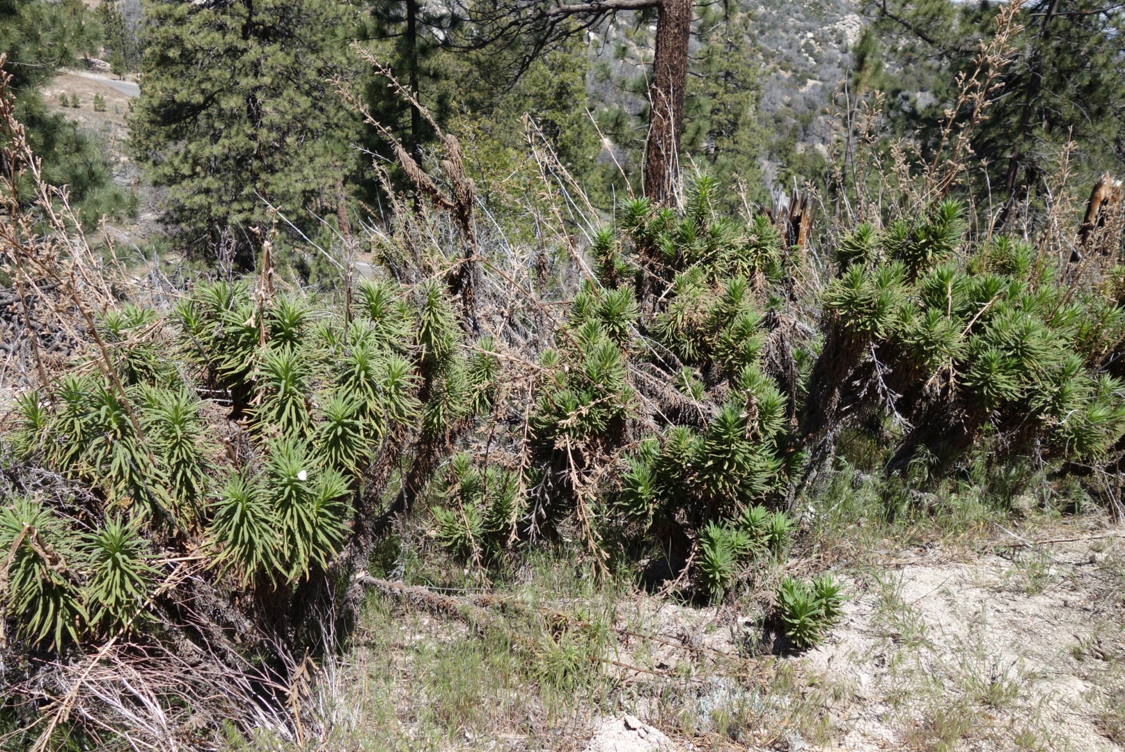 The trail crosses the road several more times. I find more poodle dog bush. I can smell it before I see it. It’s everywhere.