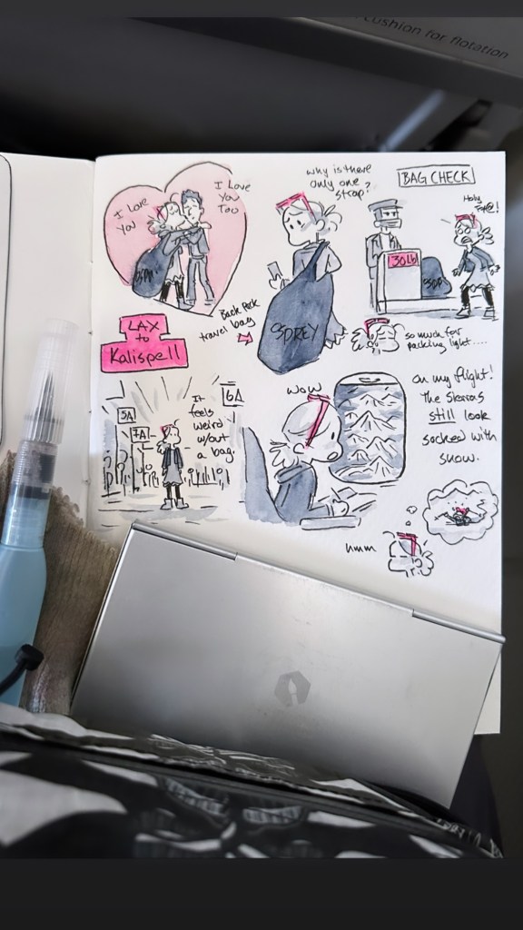 I’m flying with an osprey airporter duffle to protect my backpack as a checked bag. As much as I’d love to bring it as a carry on, there’s no way it would fit in an overhead bin, especially on a tiny flight to Kalispell.