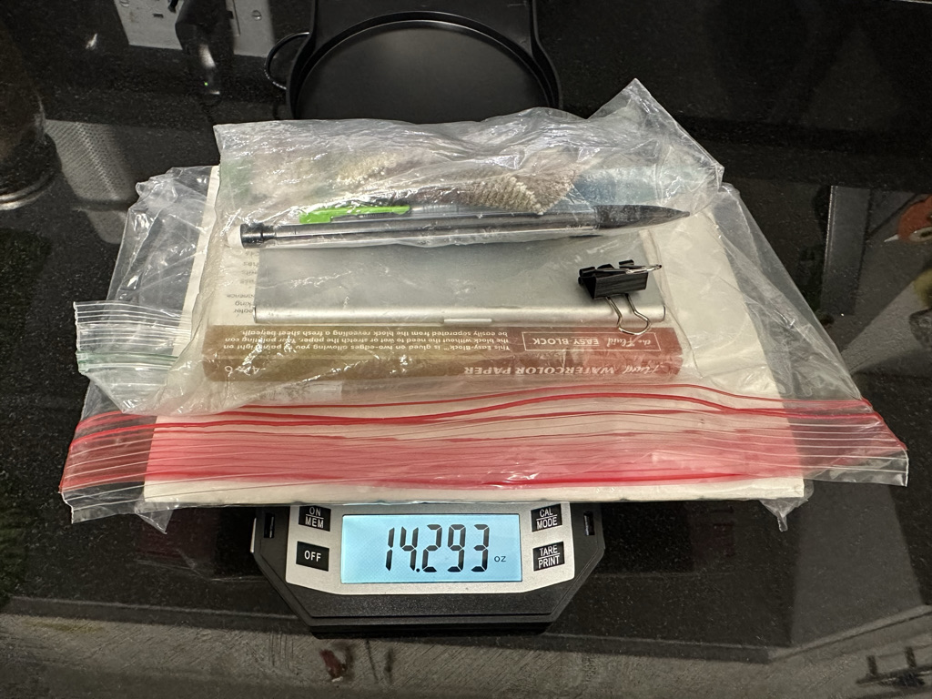 - Odor proof bags: Loksak Opsak ………………………… 1.5 oz