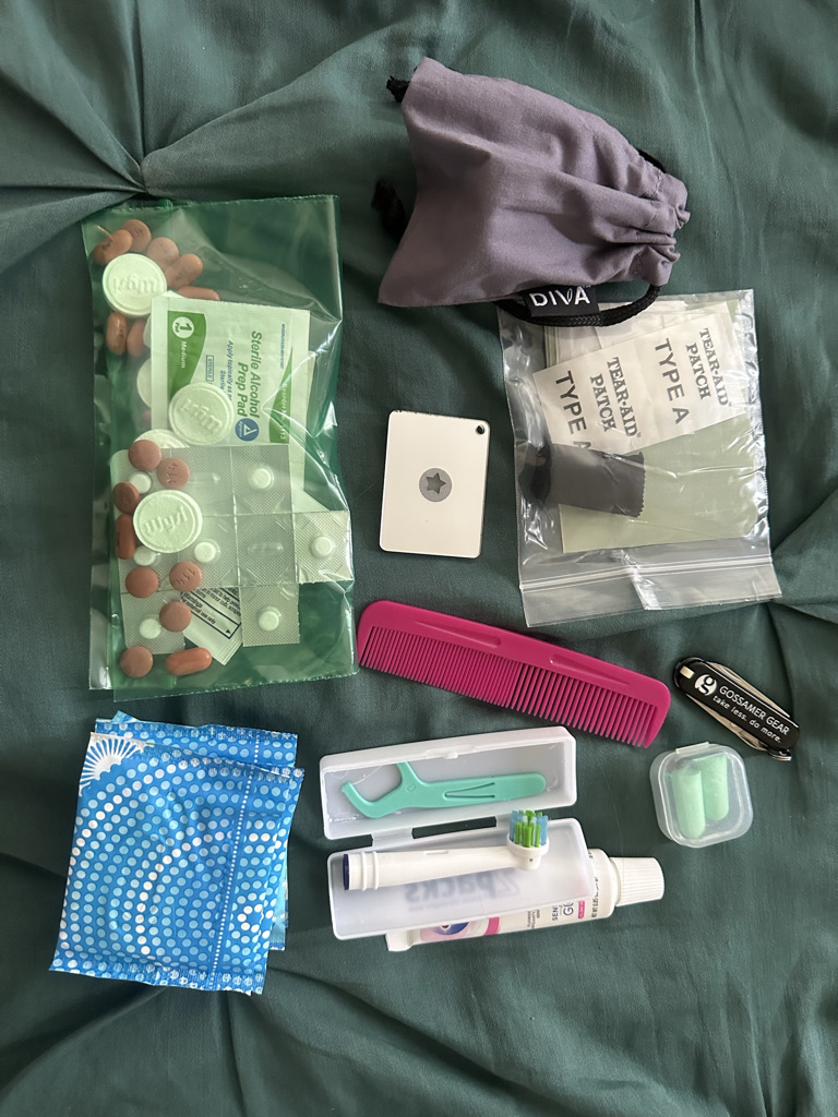 - 1st Aid Kit: ibuprofen/Advil, bandaids, tape, Claritin, antiseptic wipes … 4.1 oz