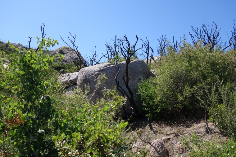 The trees are dotted with huge bolders. Soon there are more bolders than trees.