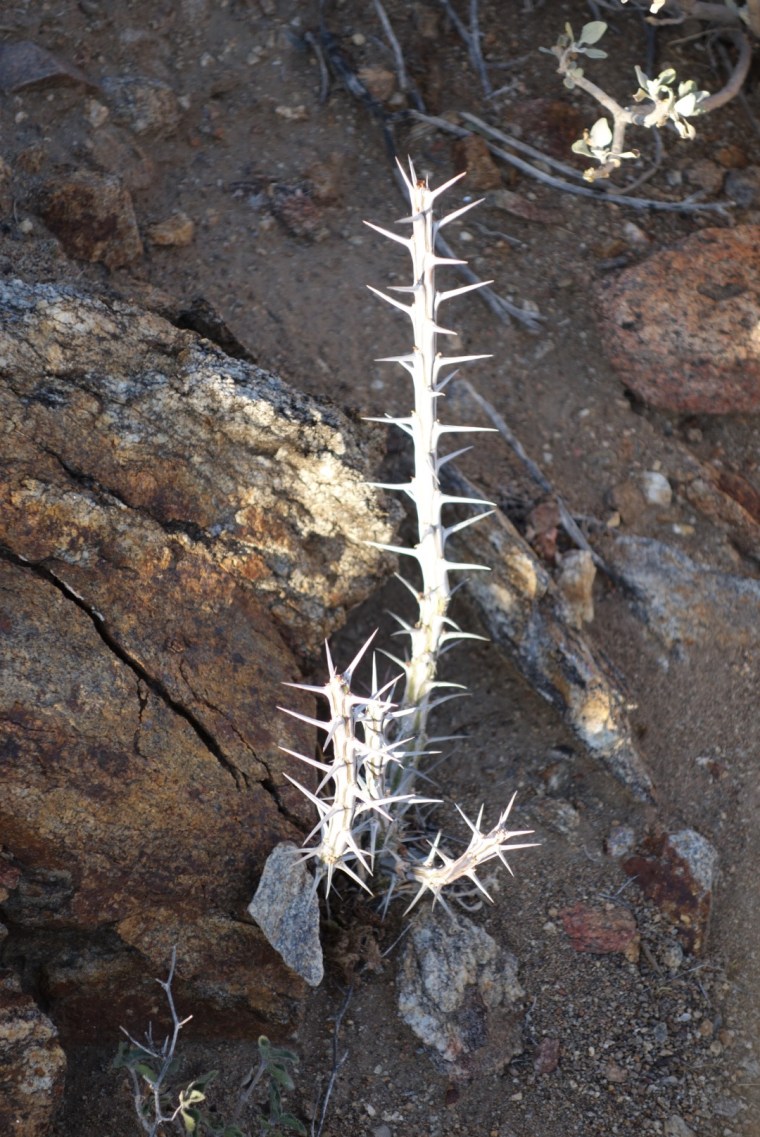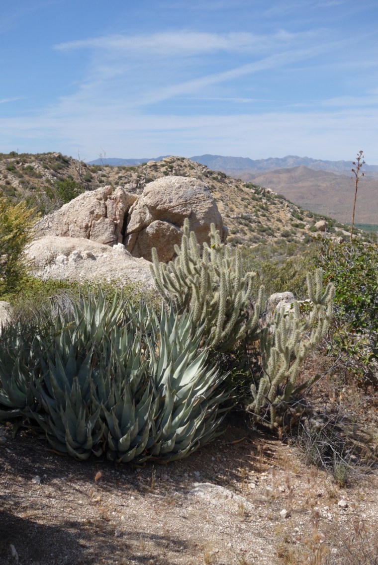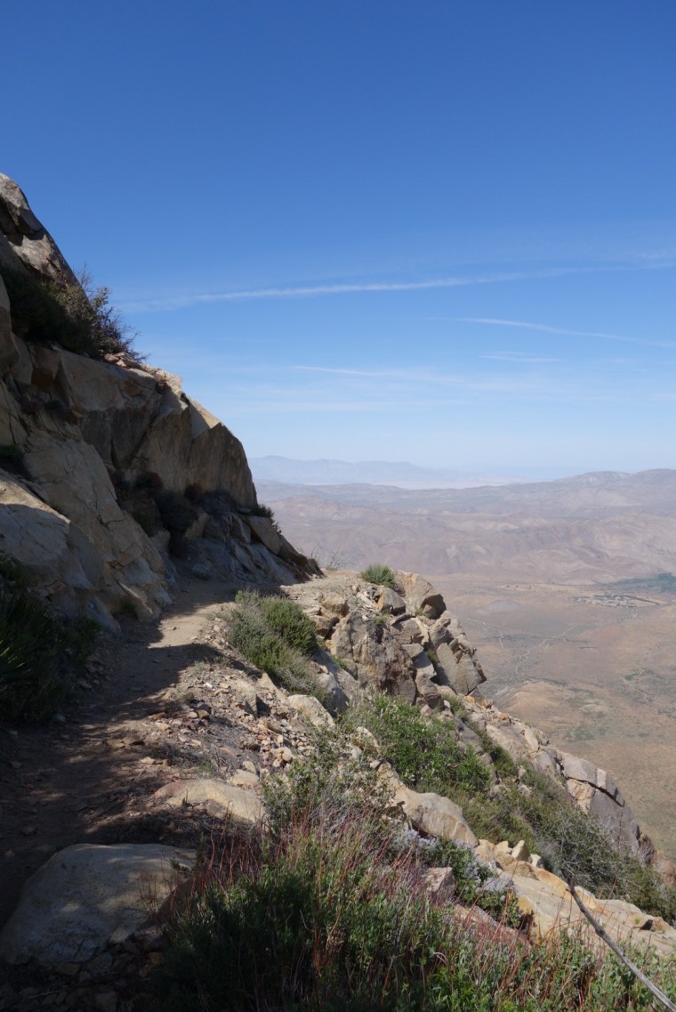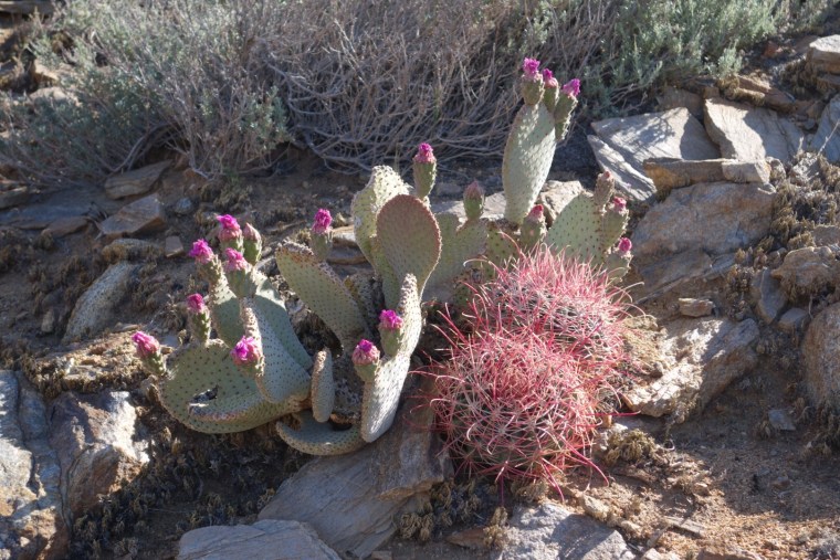 I pass a few couples hunkered down in what little shade there is. The trail winds around and around. So many switch backs! Eventually it takes me even lower. I start to see a few really tough cactuses.