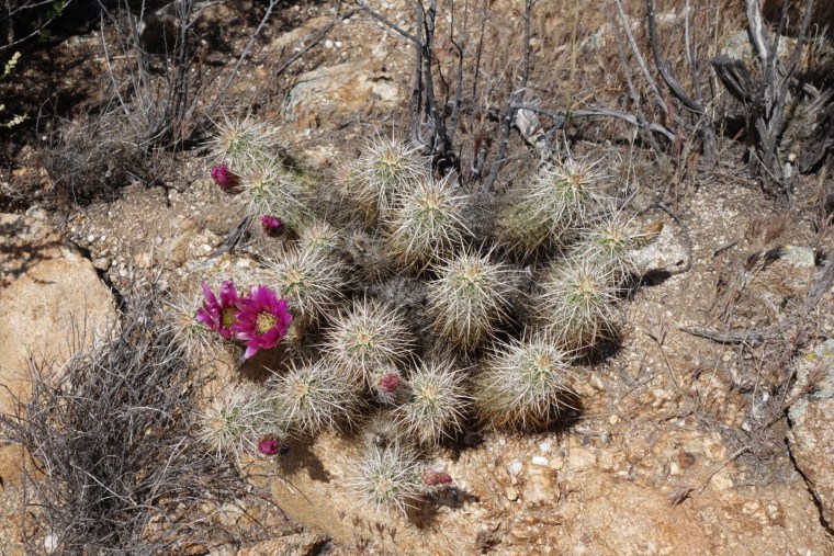 Then the trail leads up over a small ridge dotted with more cactus flowers. I’m down to about 1L of water. I sure hope this water report is right!
