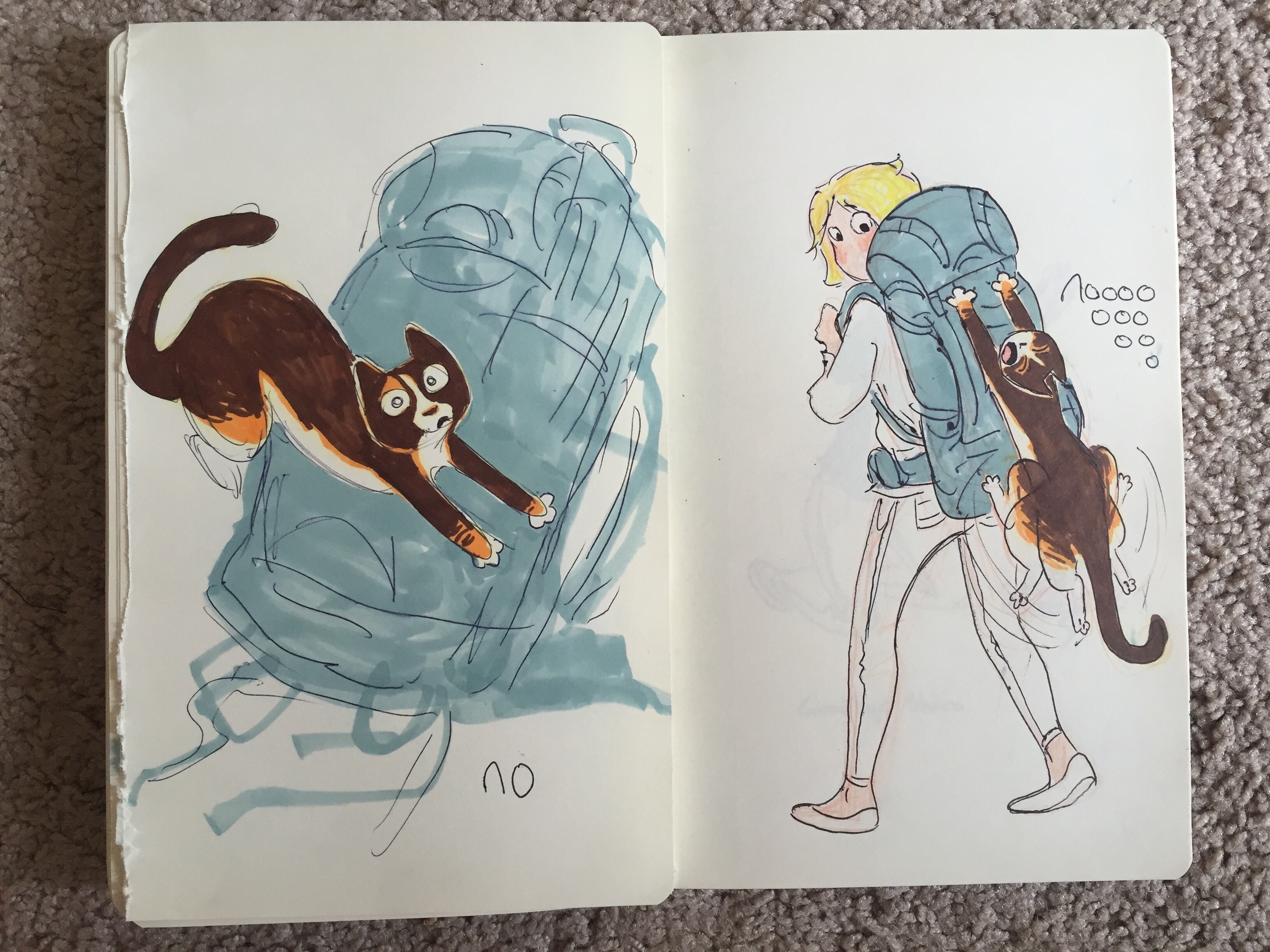 “I don’t know, I don’t see any backpacks” he whispers back.