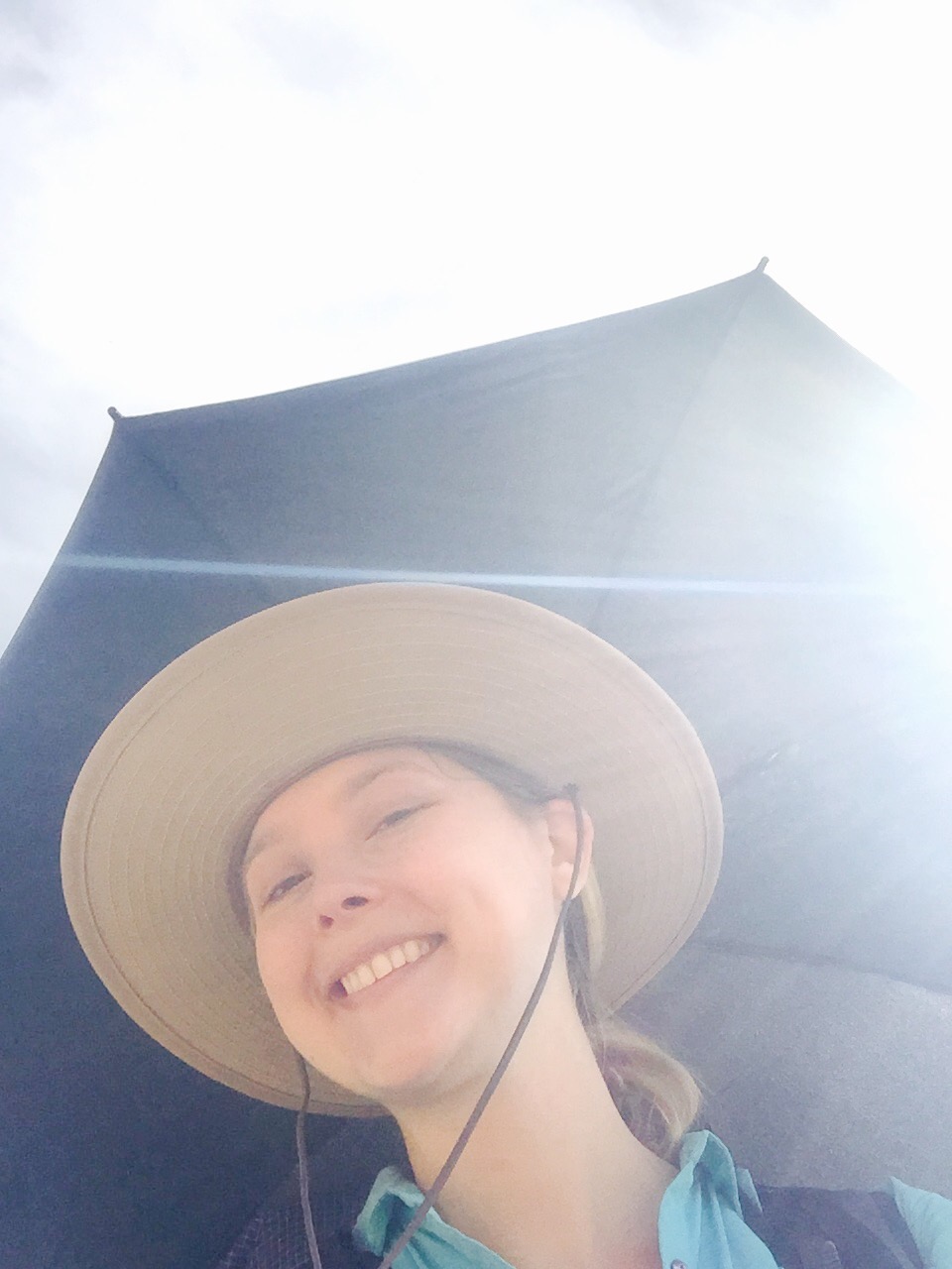I leave feeling good. And then the trail starts to gain elevation. The sun hangs high in the sky and the trees hang anywhere but over the trail. It’s super hot. I drink my water really fast. Now’s a good time to use my hiking umbrella. After some fiddling I get it to sit just right. Hooray for hiking in a patch of moving shade! Totally worth it’s weight.