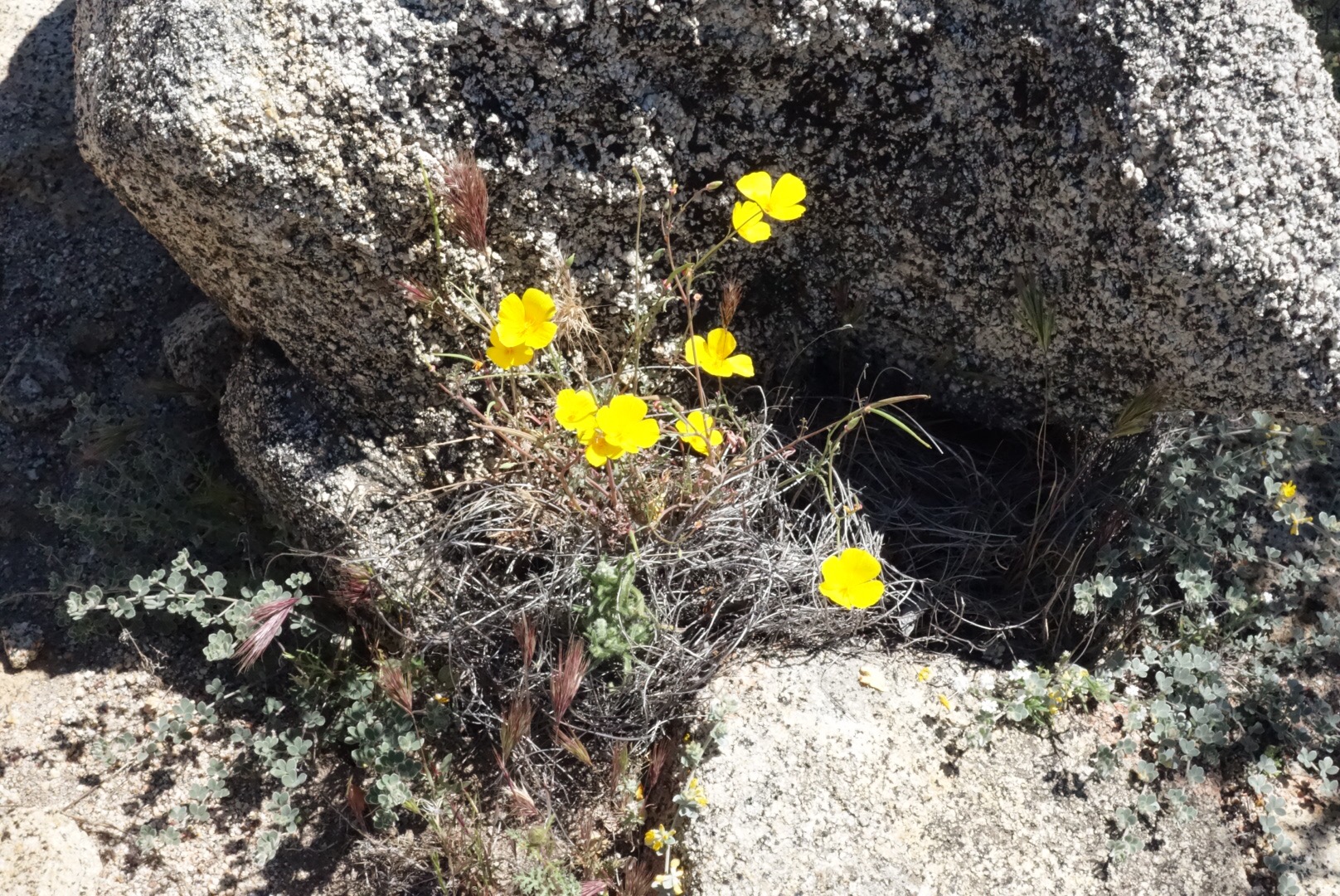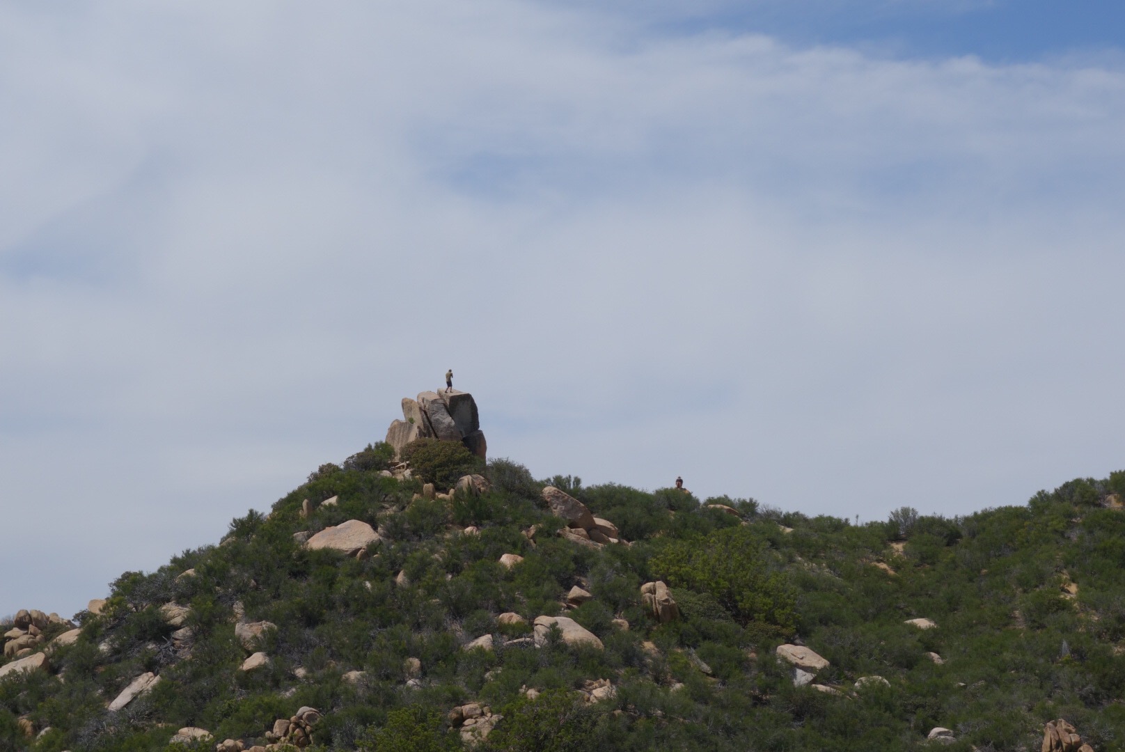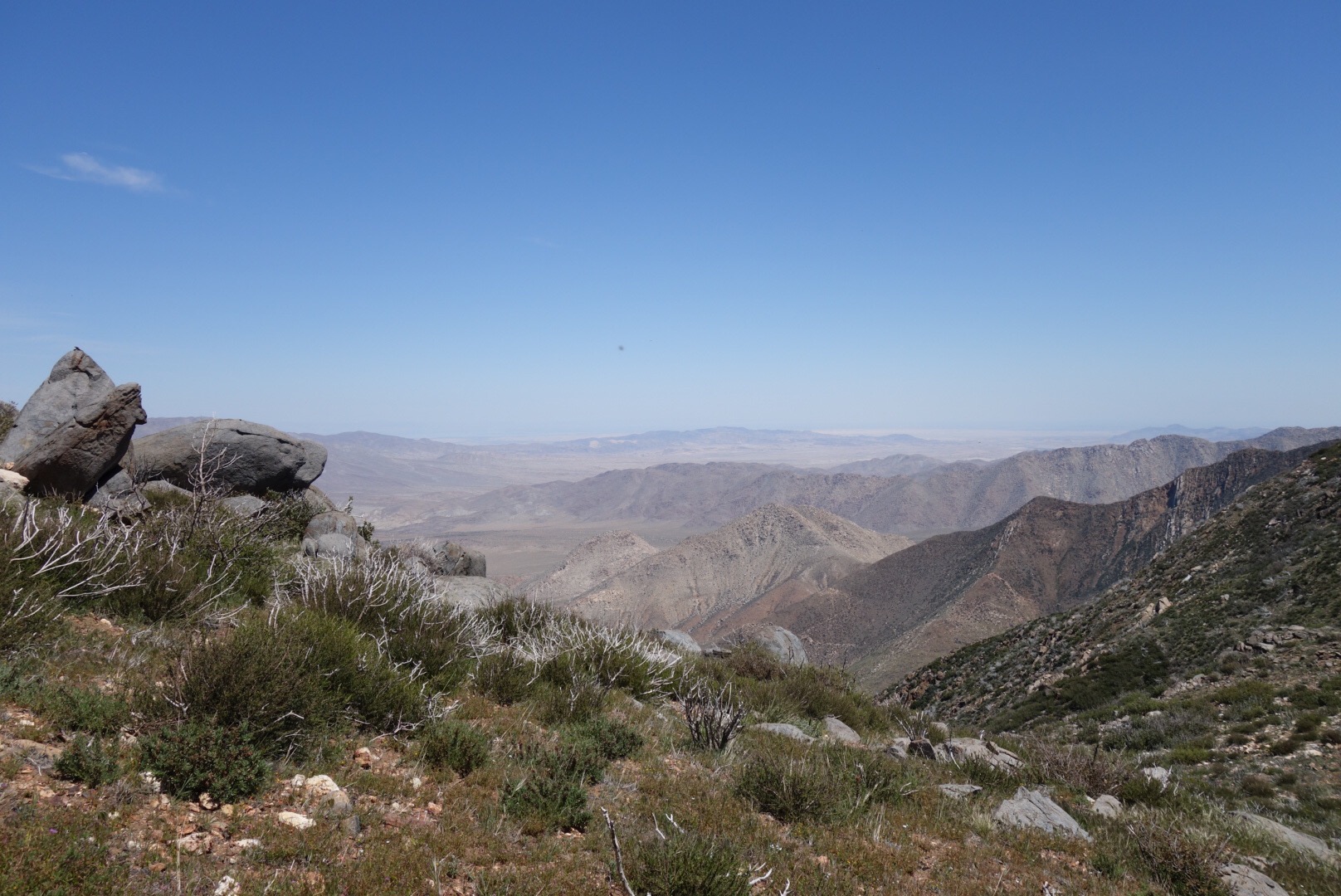 I find one bar on some tall rocks! Two hikers walk by and I knowtice they’re carying a lot more water than me…. Everything on the first section of the pct revolves around water. There isn’t much of it. I start to feel insecure about my reading of the water report (a crowd sorced webpage of the most up to date water information). Did it change since I last saw it? I check with my one bar of service…. No it’s the same… I decide it’s okay to push on to the next sorce with just the 3 litters.