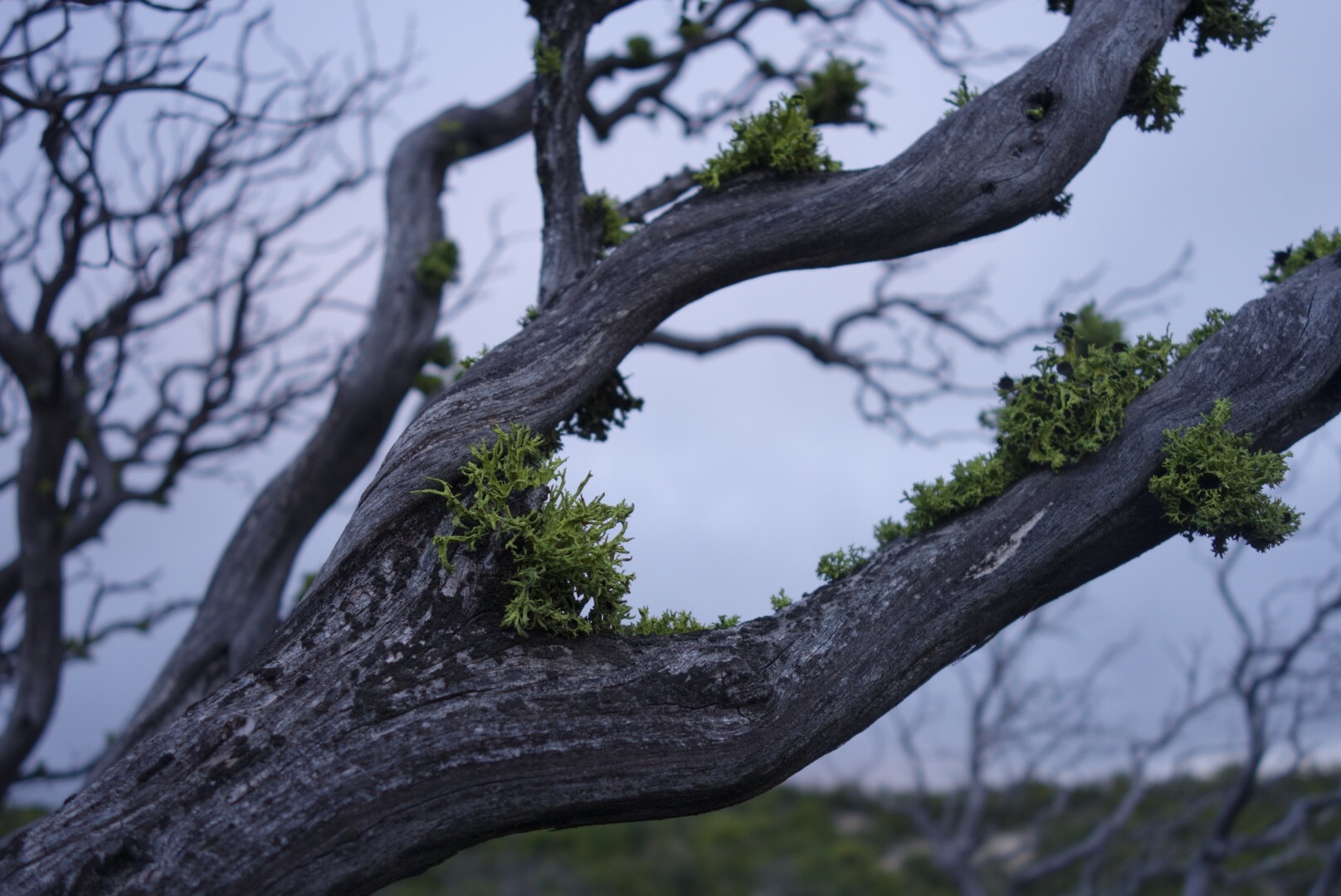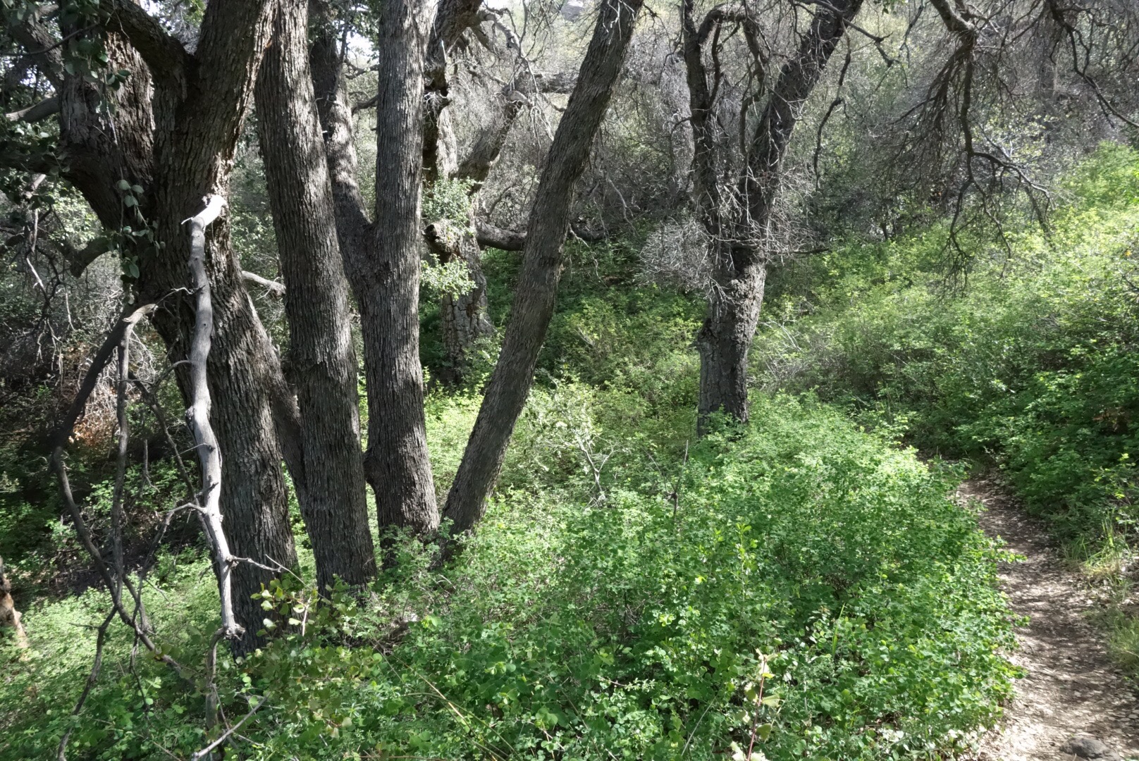 The trail starts to wander through a grove of old trees. I step aside to let a group of weekend backpackers past.