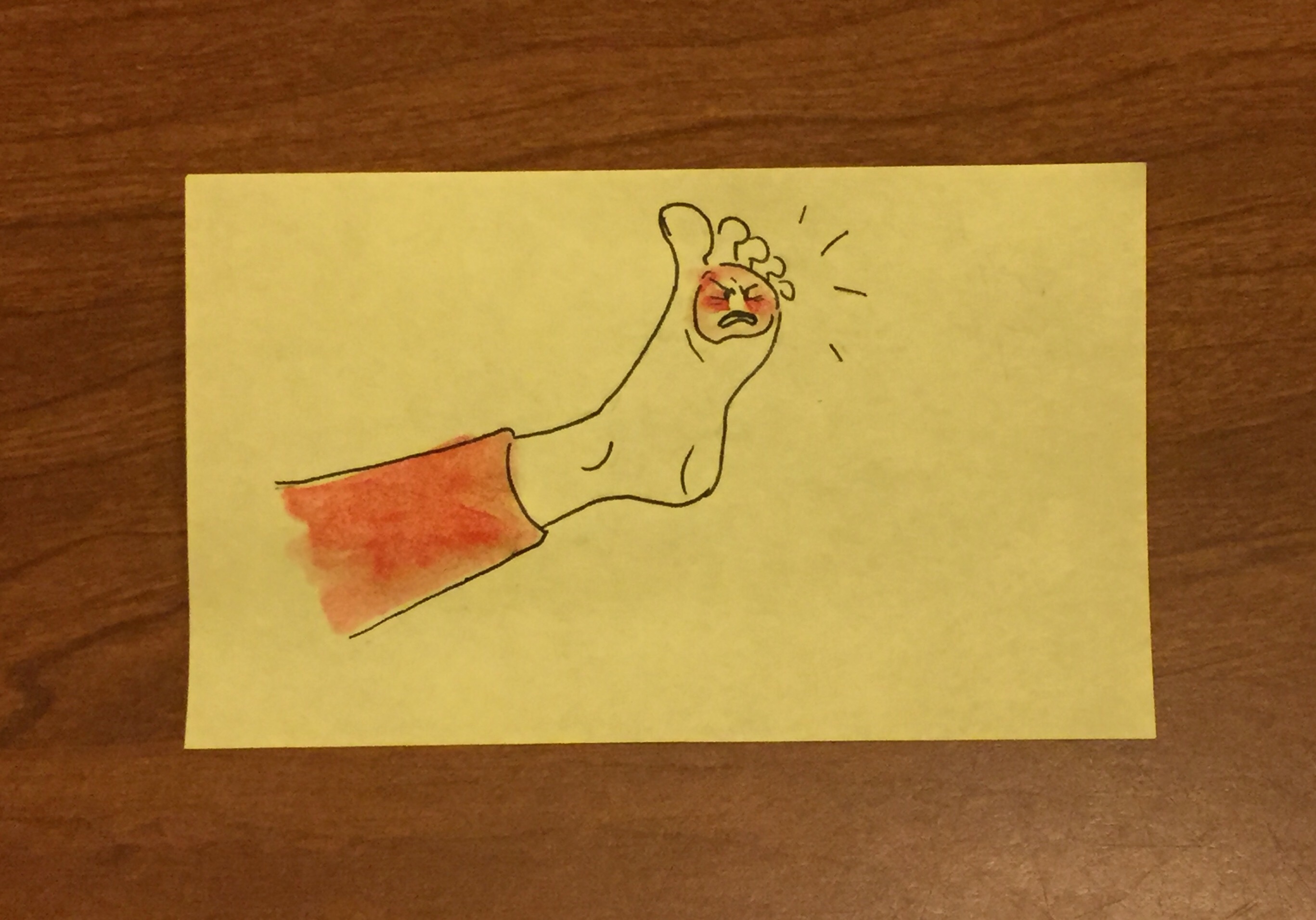 Despite my best efforts at blister prevention, I’ve achieved a rather large one on my left foot. I’ll spare you an actual picture, but you get to suffer a drawing: