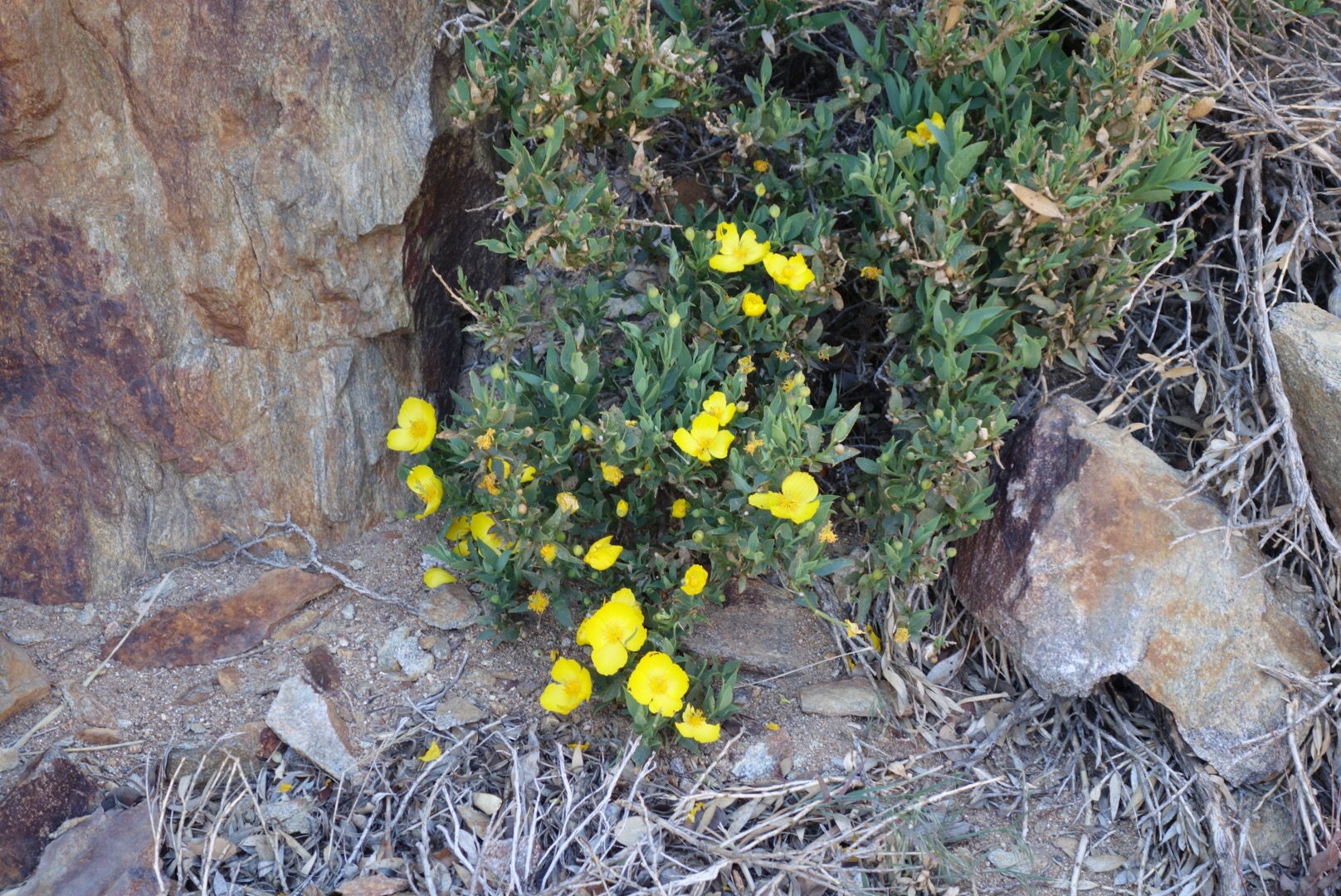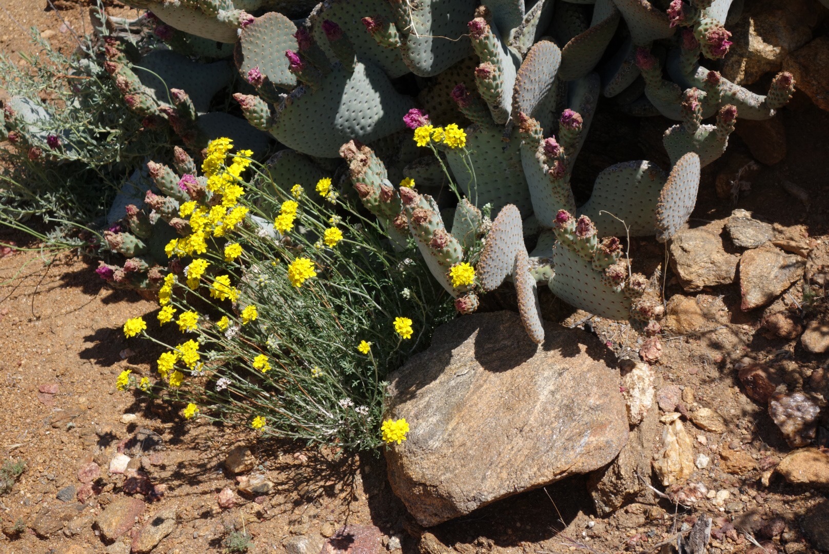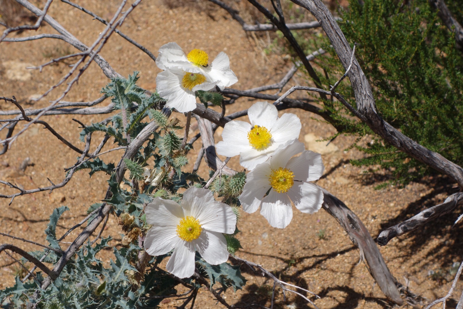 Then the trail leads up over a small ridge dotted with more cactus flowers. I’m down to about 1L of water. I sure hope this water report is right!