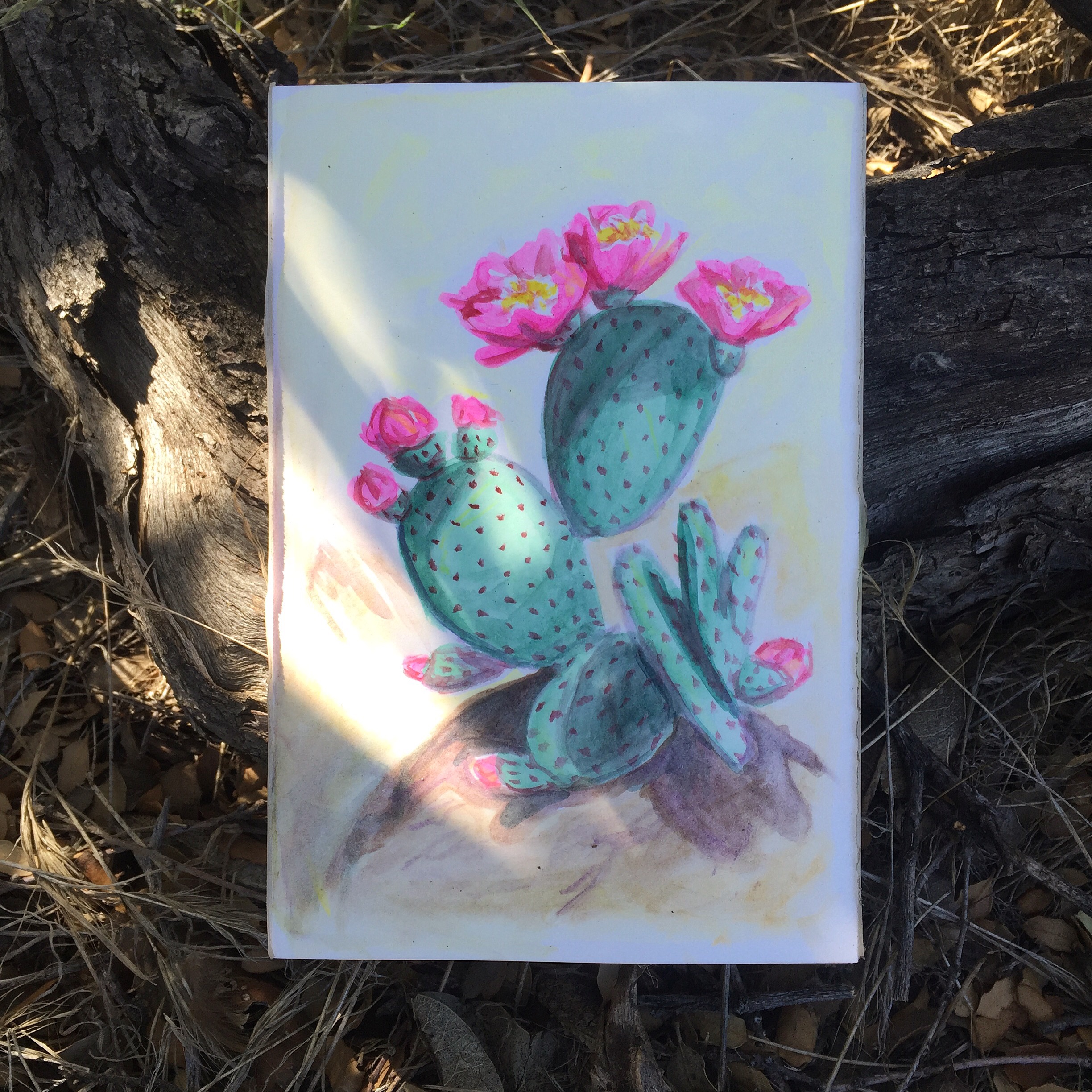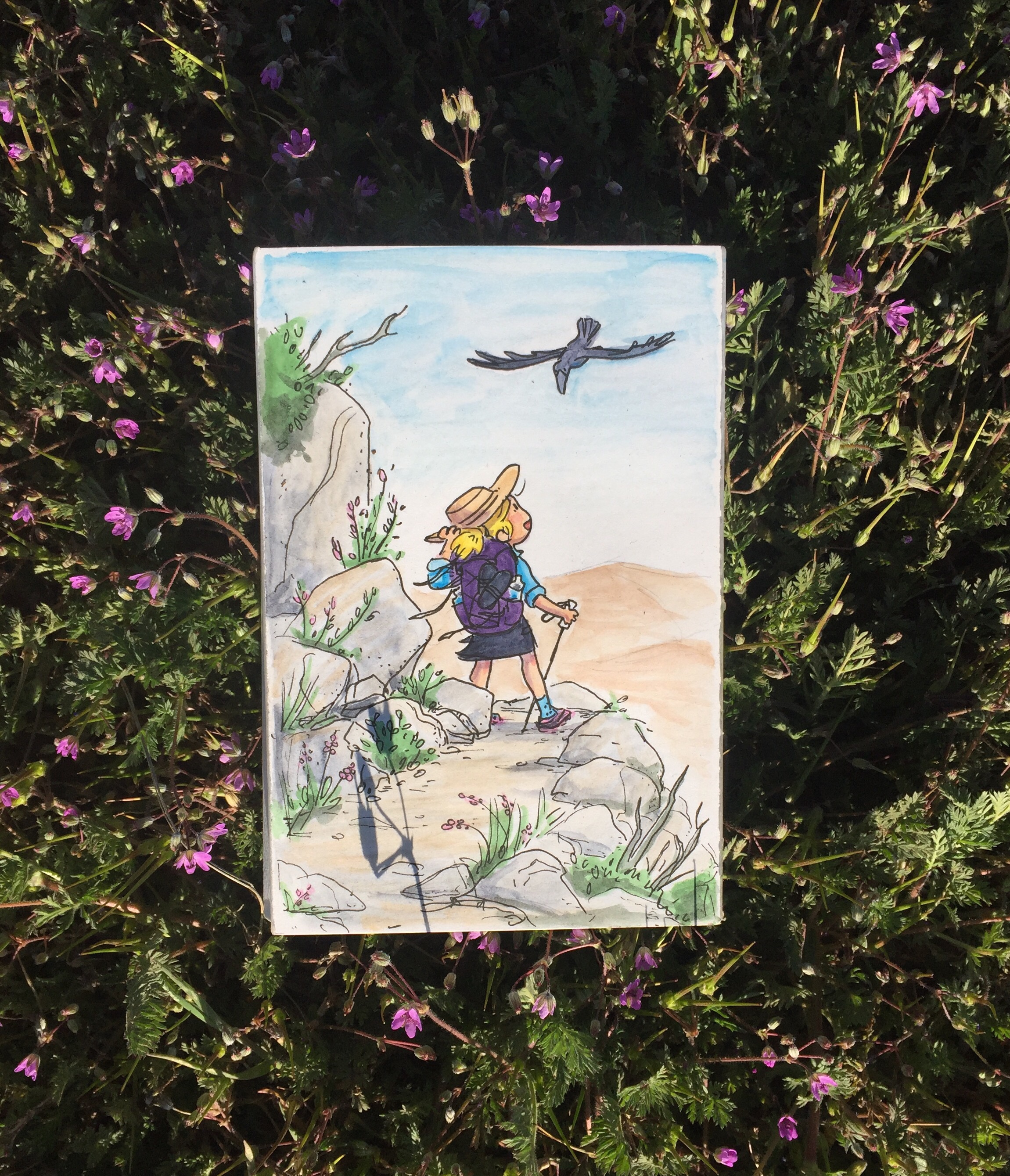I take about 3L and head back up the hill. Everyone naps in the shade. It’s too hot to hike. I find my own patch of shade and paint.