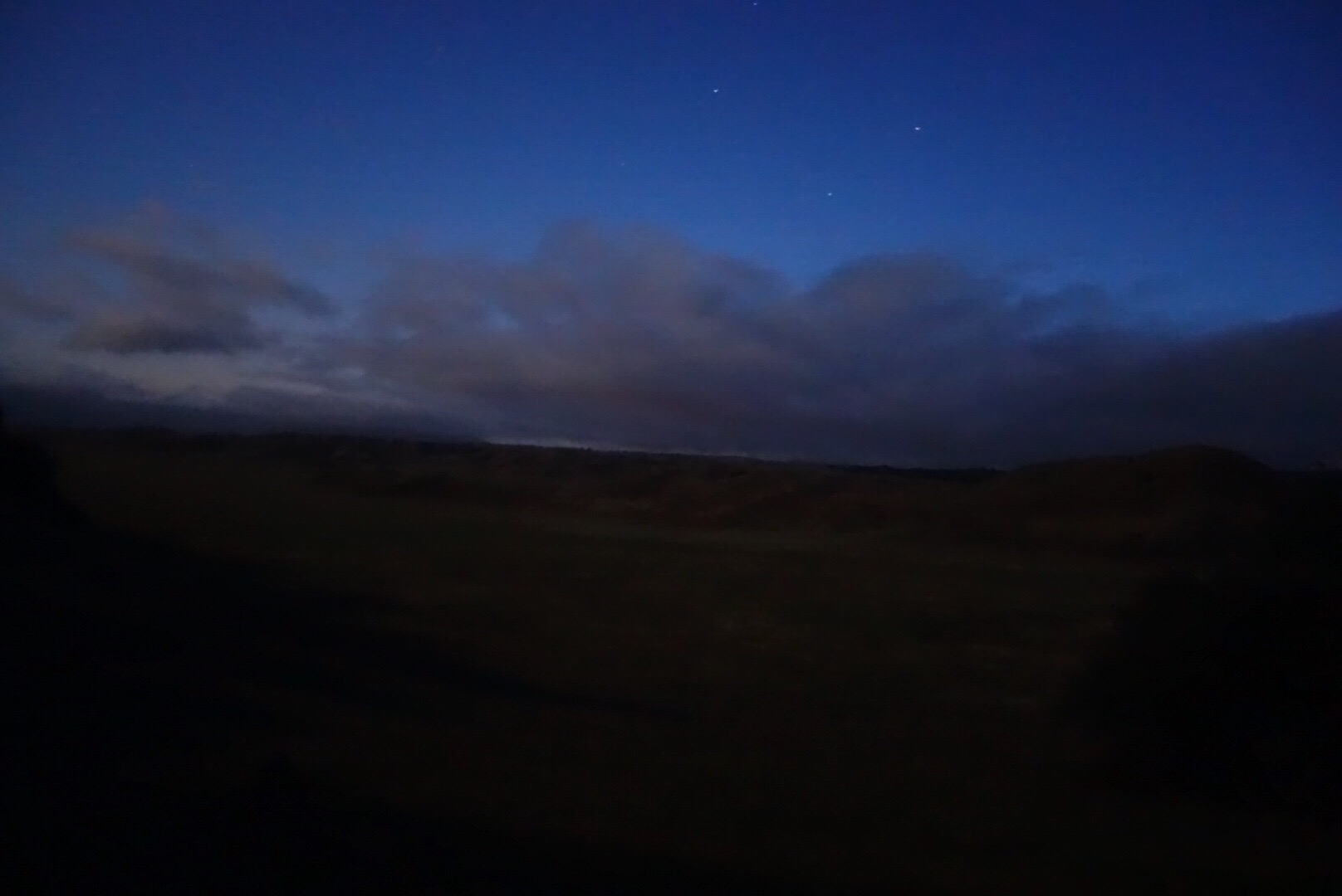 The trail enters a wide sweeping meadow. I’m surrounded by nothing but grass, stars and the moon.