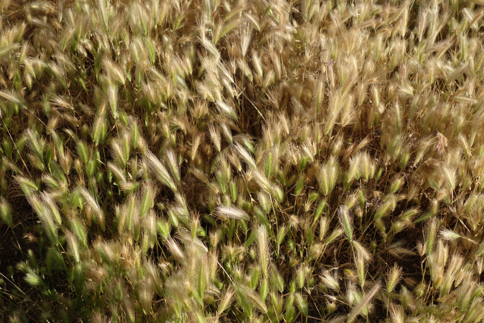 The air is hot. The grass looks green but I can smell it baking in the sun.