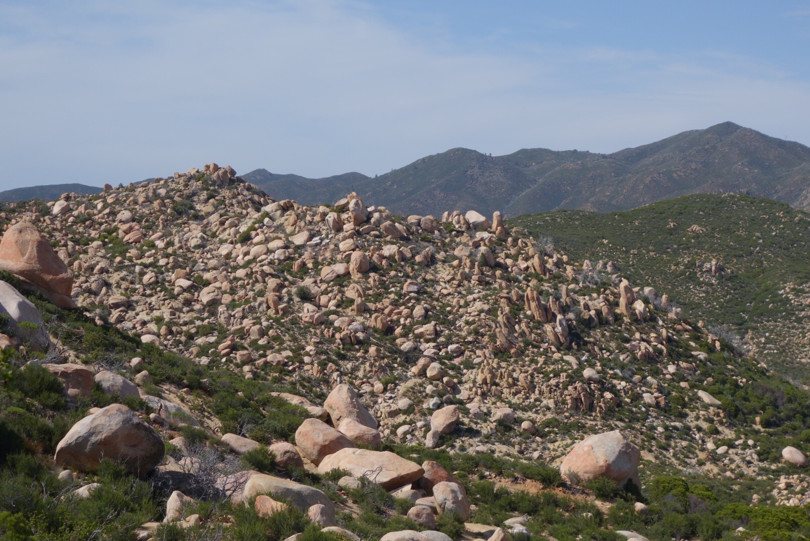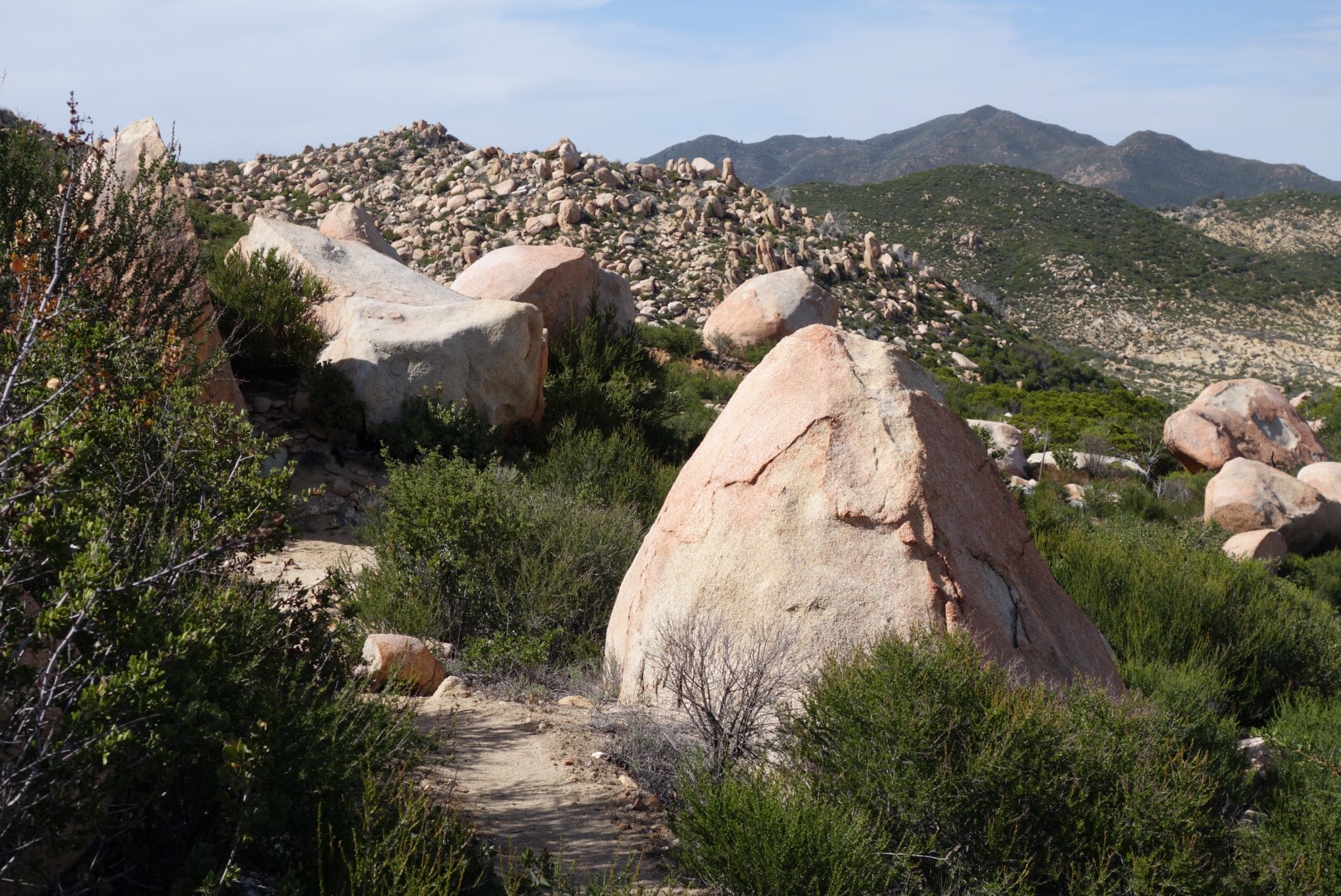The trees are dotted with huge bolders. Soon there are more bolders than trees.