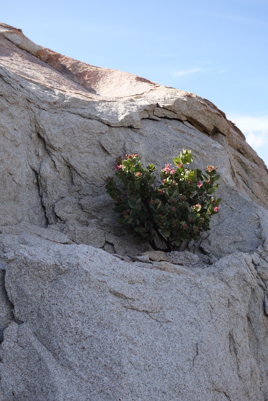 The trail winds between the huge rock formations. Plants fill in all the gaps between the sand stone. I feel like I’m in a labrinth. The light bounces off all the curving surfaces. I could explore this section for hours.